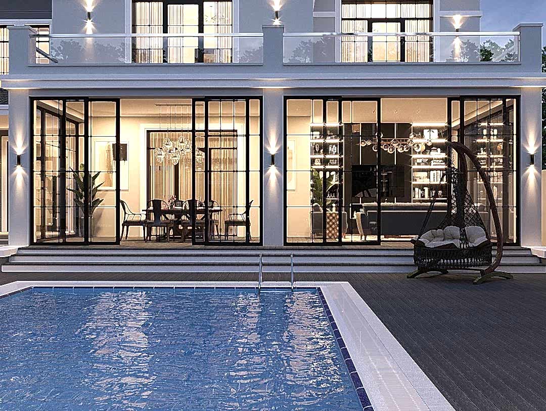 Dış cephe tasarımında özellikle estetik detaylara önem veriyoruz. Villanın dış görünümü, mimari zevkinizi yansıtacak şekilde özenle planlanır.