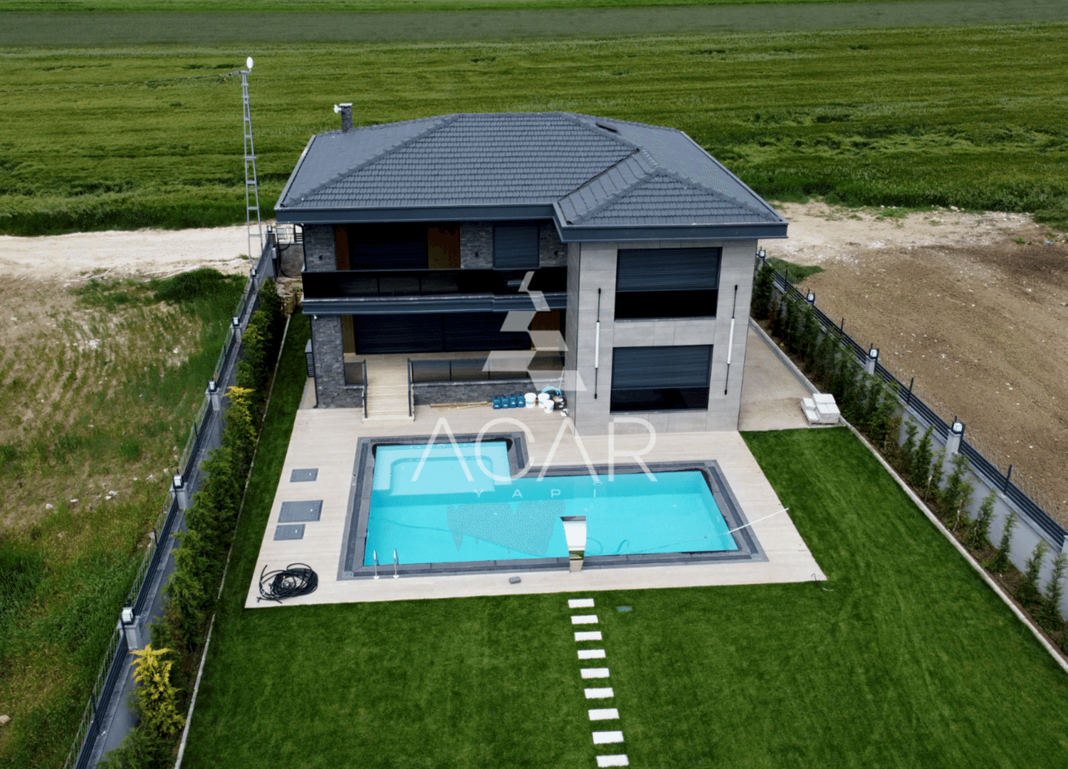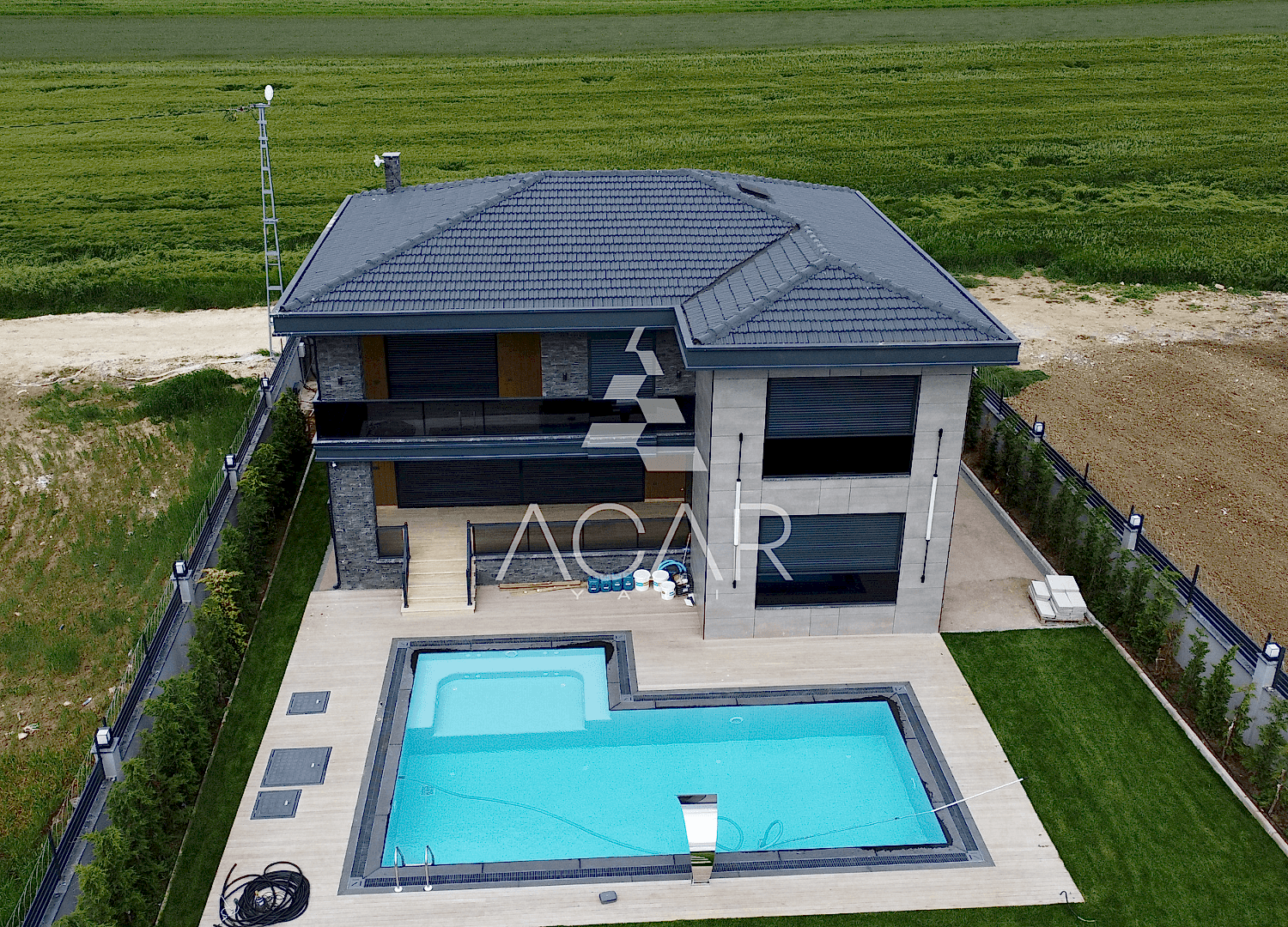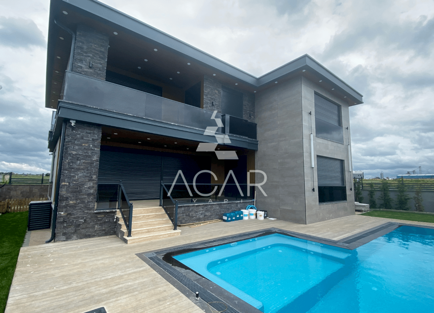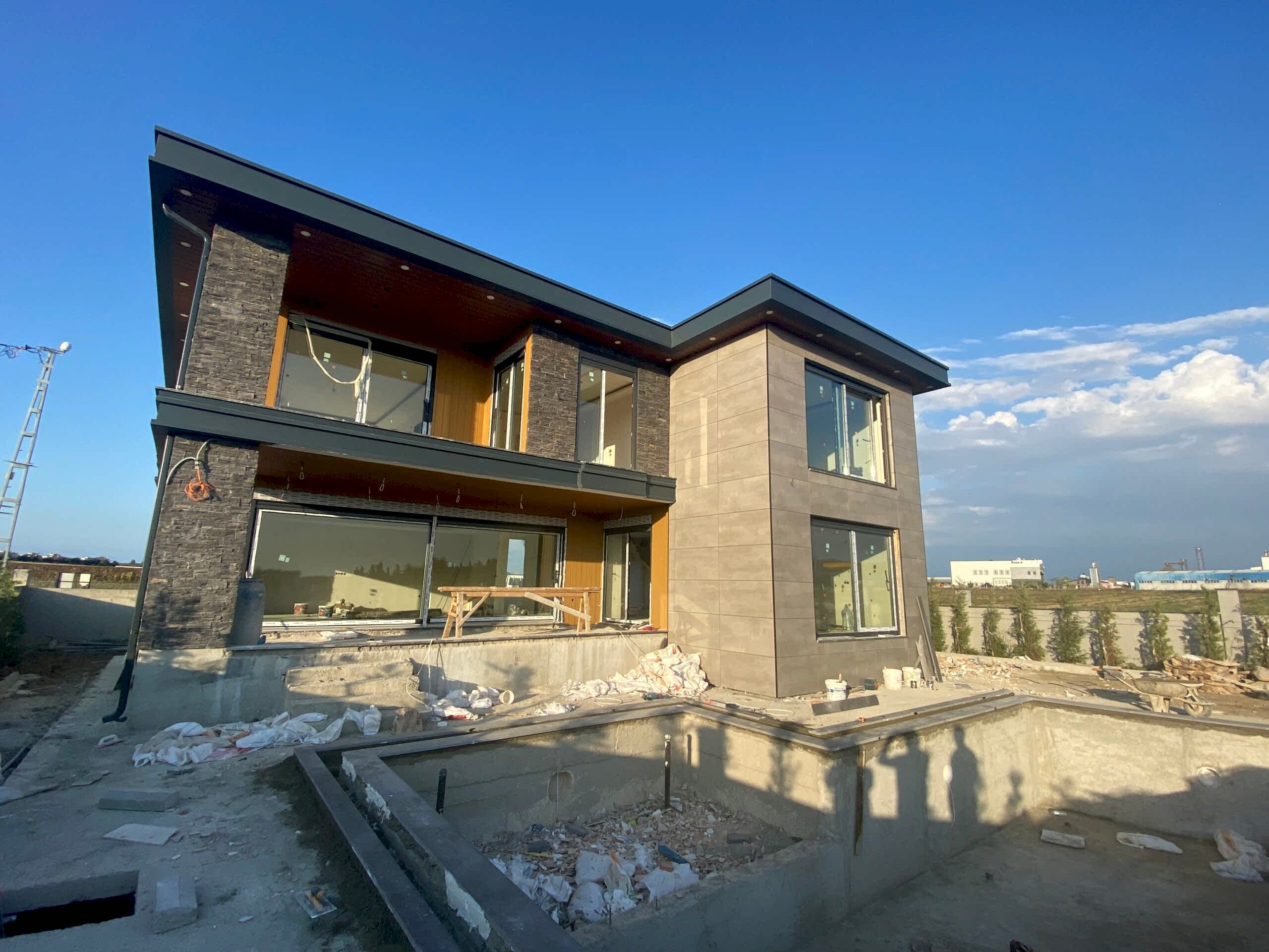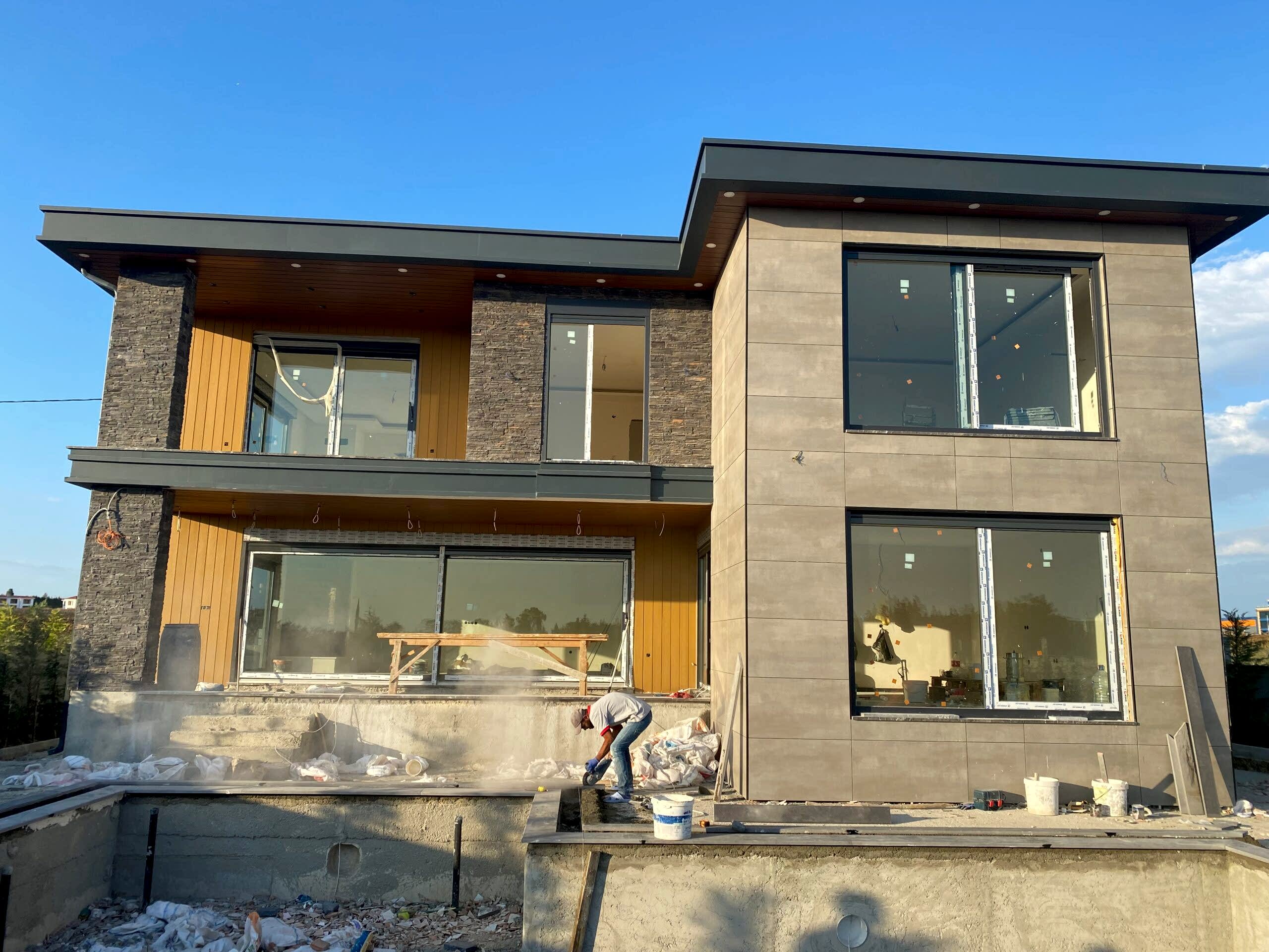 Bahçemizde taşmalı havuz ve ateş çukuru yaptık. Dış cephe olarak seramik mantolama kullandık. Böylece, villamıza modern bir görünüm kazandırdık. Ayrıca, balkon kolonlarında taş kaplama kullanarak, villamızın estetik görünümünü artırdık.