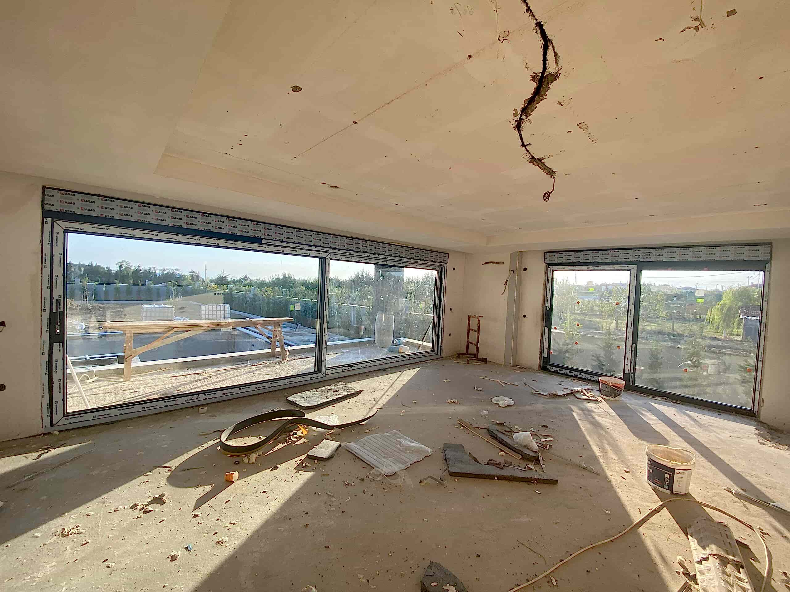 İnşaat sürecinde, ruhsatın alınması sonrasında kaba inşaat ve ince inşaat olmak üzere toplamda 10 ay harcadık. Kış aylarının etkisi nedeniyle, inşaat sürecinde bazı zorluklar yaşadık ancak projemizi başarıyla tamamladık.