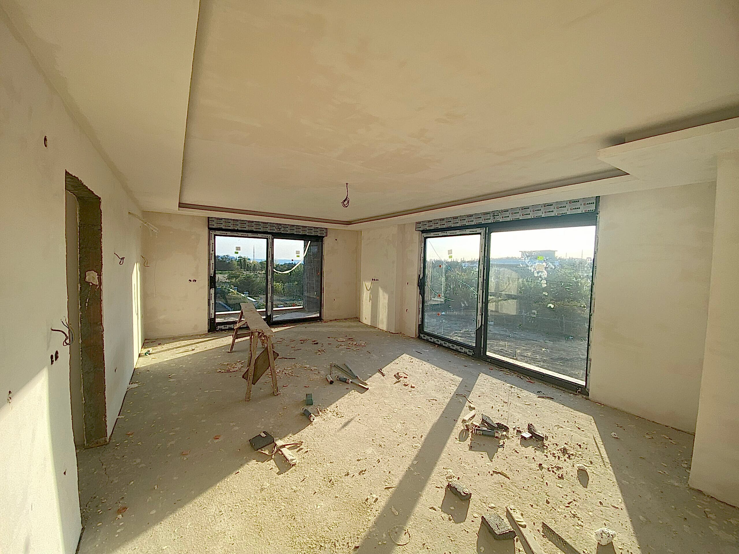 Giriş kat zemininde 60×60 seramikler kullanılmıştır. Üst katlarda ise 15 mm laminant parke tercih edilmiştir. Bütün kapılar lake olarak yapılmıştır. Ayrıca yatak odası dolapları MDF ve membran kaplamadır. Pencerelerimiz Alman firmasına ait çift açılır özel üretimdir.